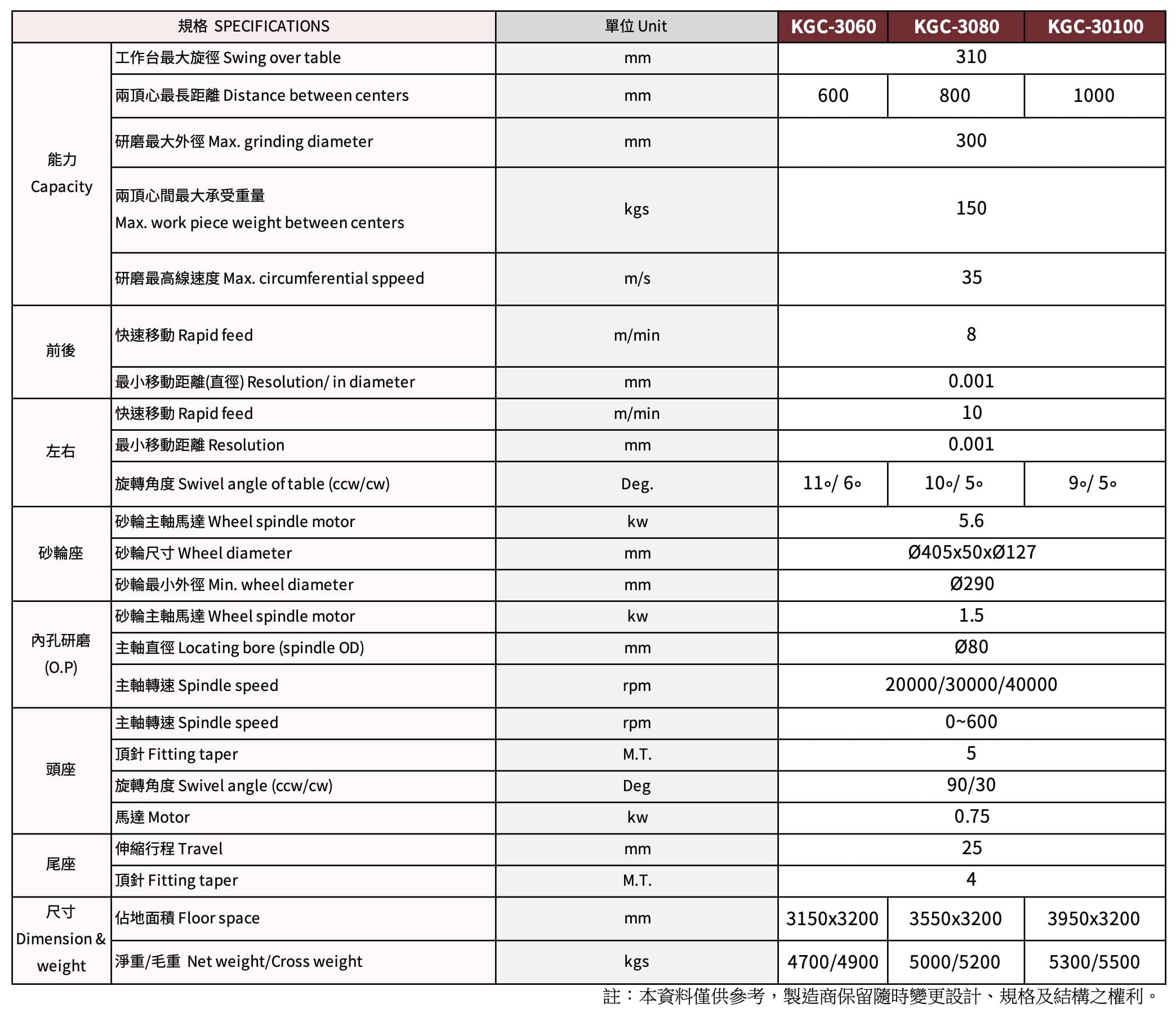 | 研磨最大外徑 (mm) | 300 | 300 | 300 |